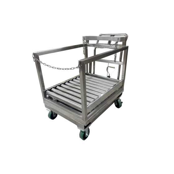 最低高度 420mm、最高高度 1080mm、最大負荷 550kg (滾輪面與地面高度)